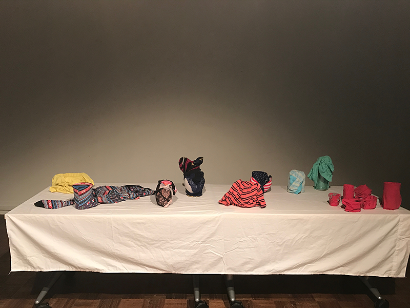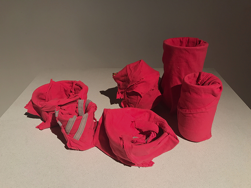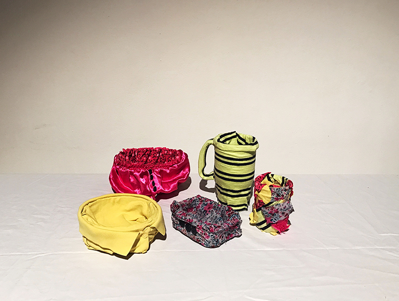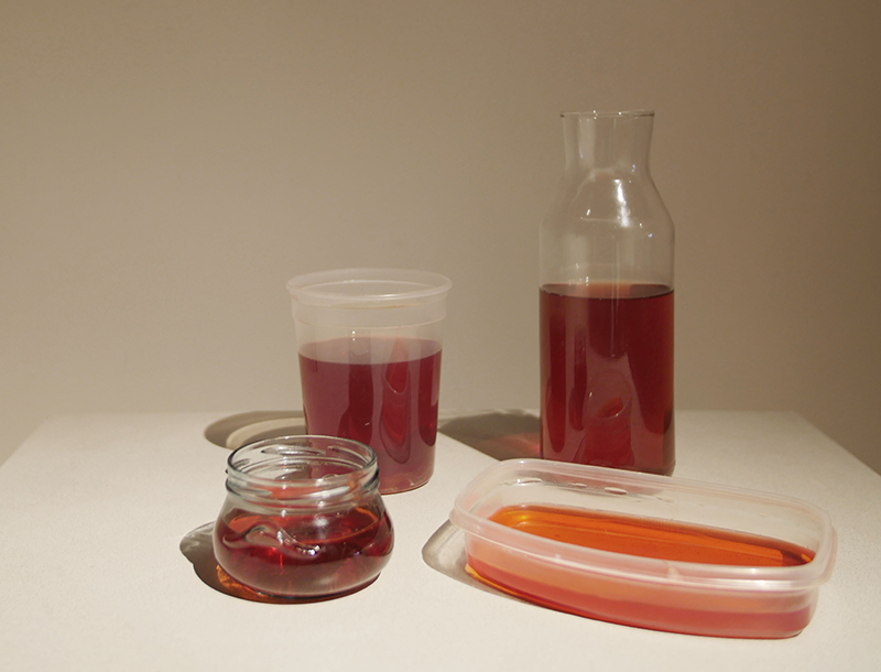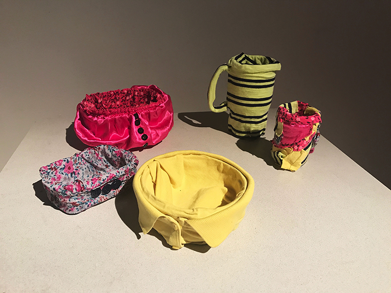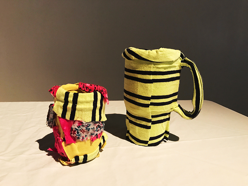 Just as a liquid takes the shape of it’s container, an individual’s character/behavior often takes the shape of his or her environment. Each container serves as a metaphor for a situation, my behavior is liquid, and able to adapt to each. My clothes are wrapped around personal items implying the I adapt my behavior based on the situation. Also there is an idiom in Farsi that translates to “consider your container”, which means know your limitations.